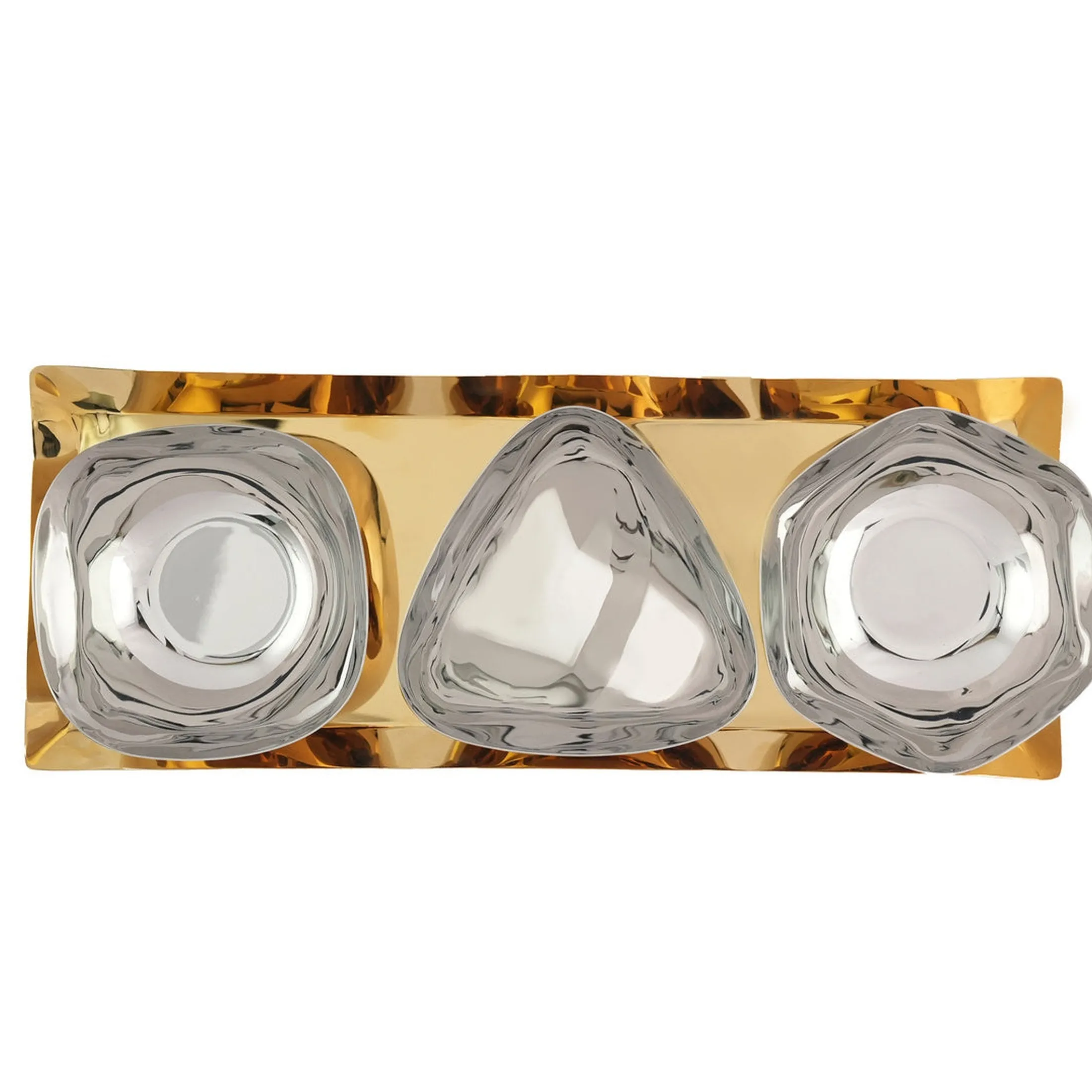 Introducing our Auburn Serving Tray – the perfect serving piece for those who love to elevate their dining experience. This unique set includes a modern geometric tray and three beautifully designed appetizer bowls, making it a must-have for any host or hostess.