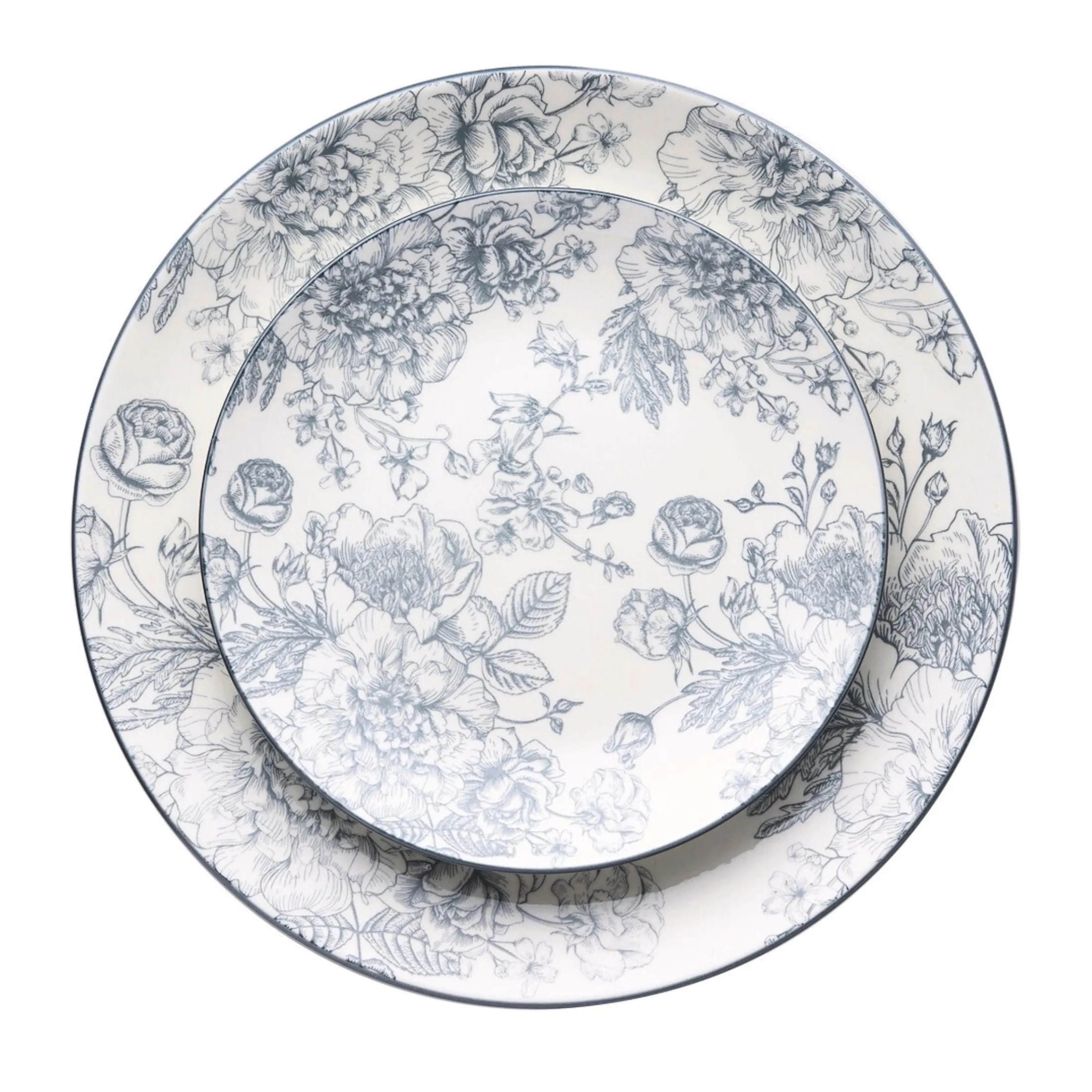 Bring the romance of an overgrown English garden to your table with this exquisite 12-piece porcelain dinnerware set. Designed to capture the beauty of vintage florals, each piece is adorned with delicate, lush botanical patterns that evoke the charm of a countryside estate.