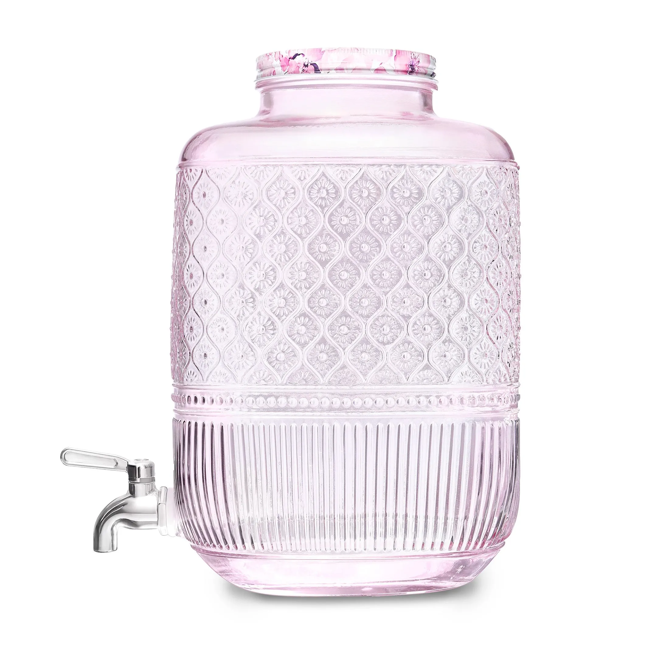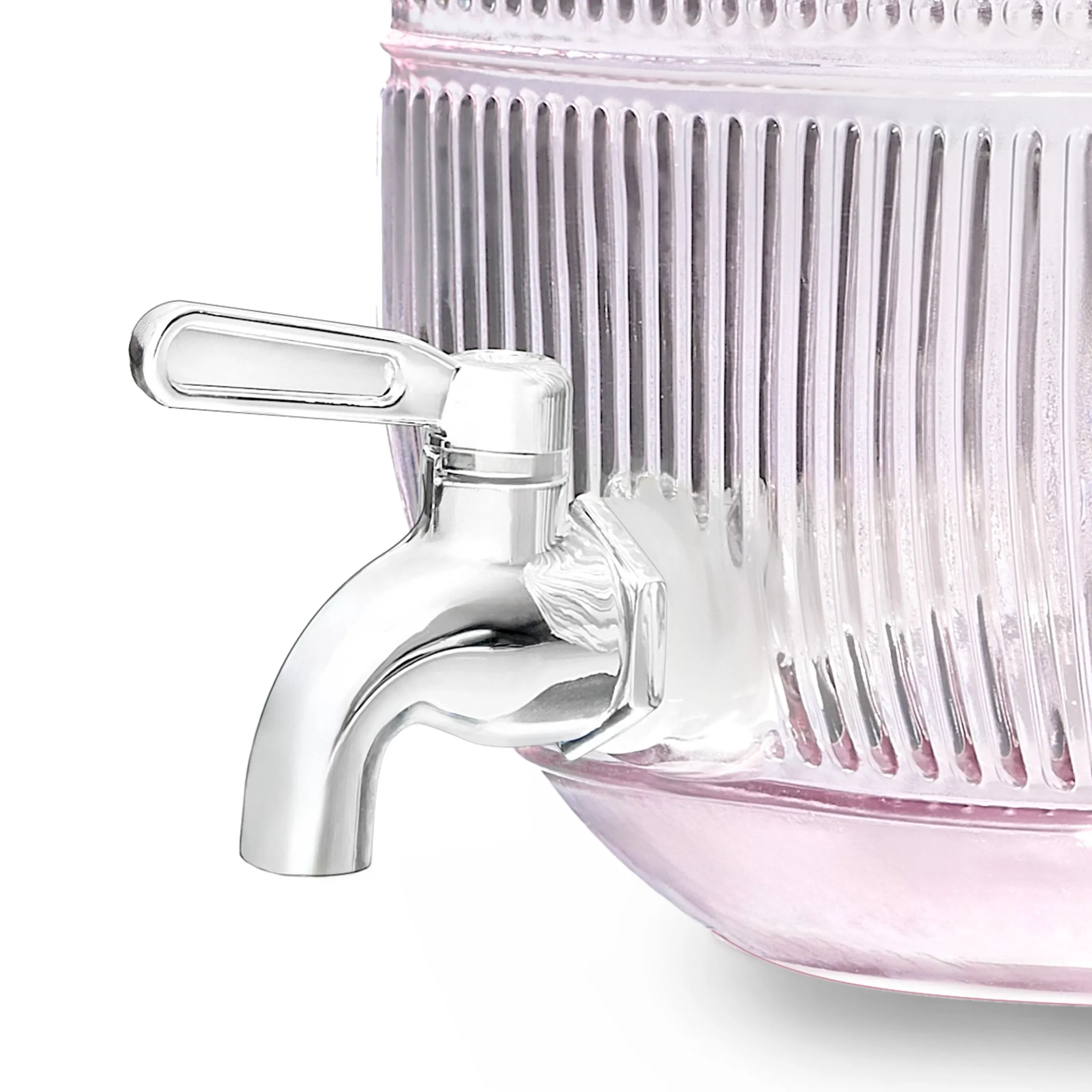 Serve your favorite drinks in style with the Godinger Claro Pink Beverage Dispenser. Featuring a beautifully textured Claro pattern, this dispenser adds elegance to any gathering. Crafted from high-quality unleaded crystal for durability, it boasts a generous capacity and an easy-to-use spout for effortless pouring. Perfect for parties, outdoor events, or everyday use, this chic dispenser brings function and sophistication to your drink station.