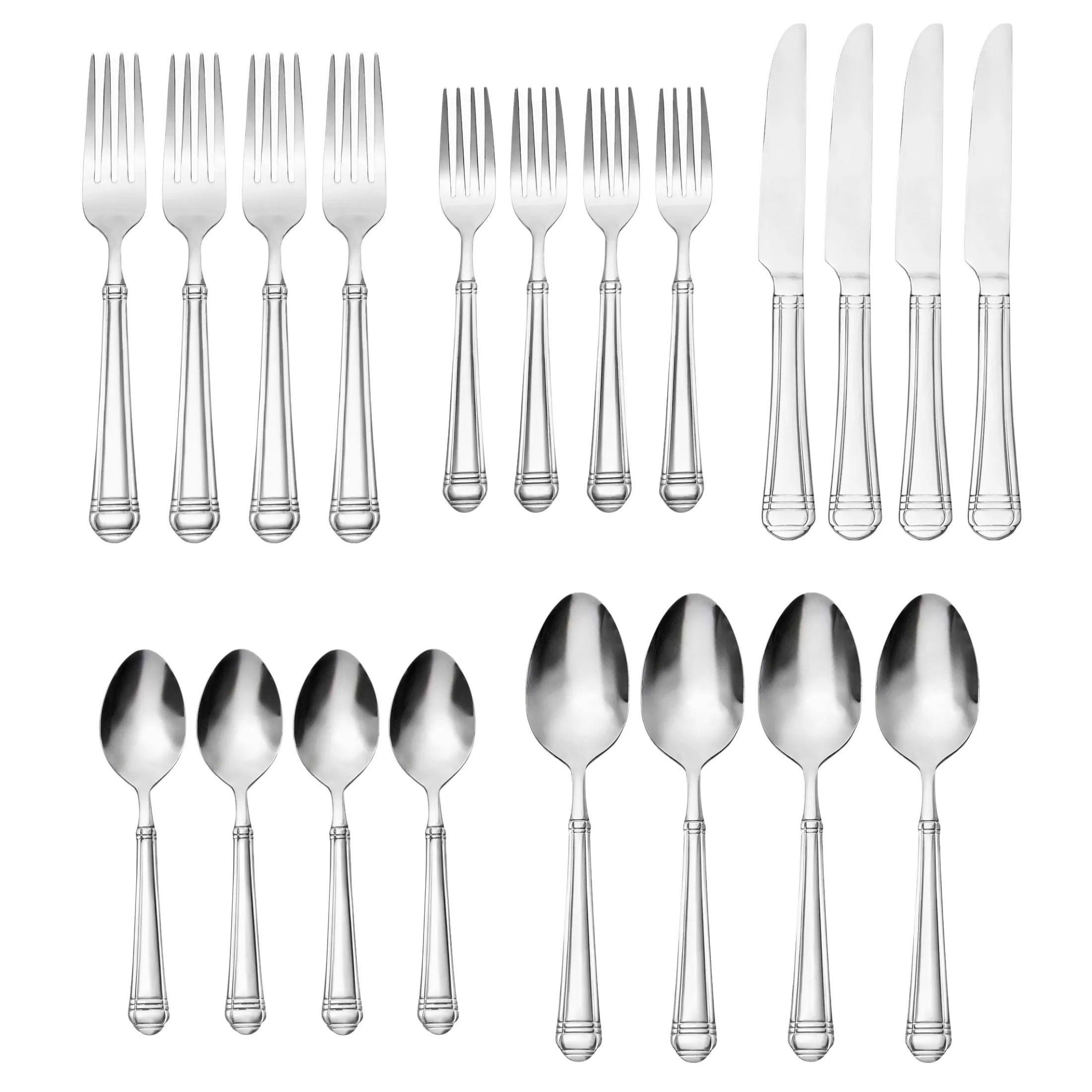 This exquisite Crete Matte 18/0 flatware set is constructed from stainless steel and is inspired by the classic Victorian style. With a serving size of four, you can present a meal in impressive style. Enjoy a timeless and classic look that will enhance your dining experience.