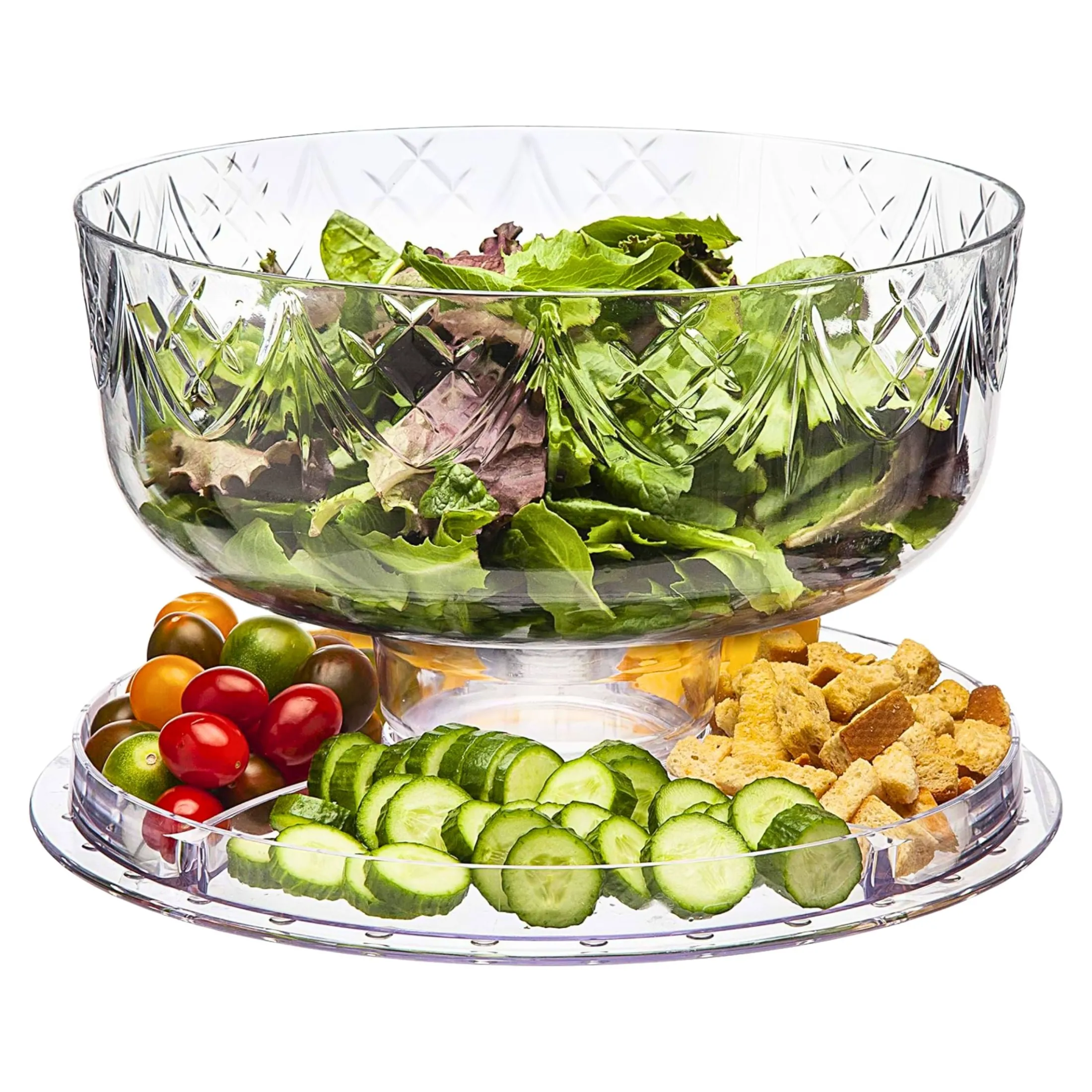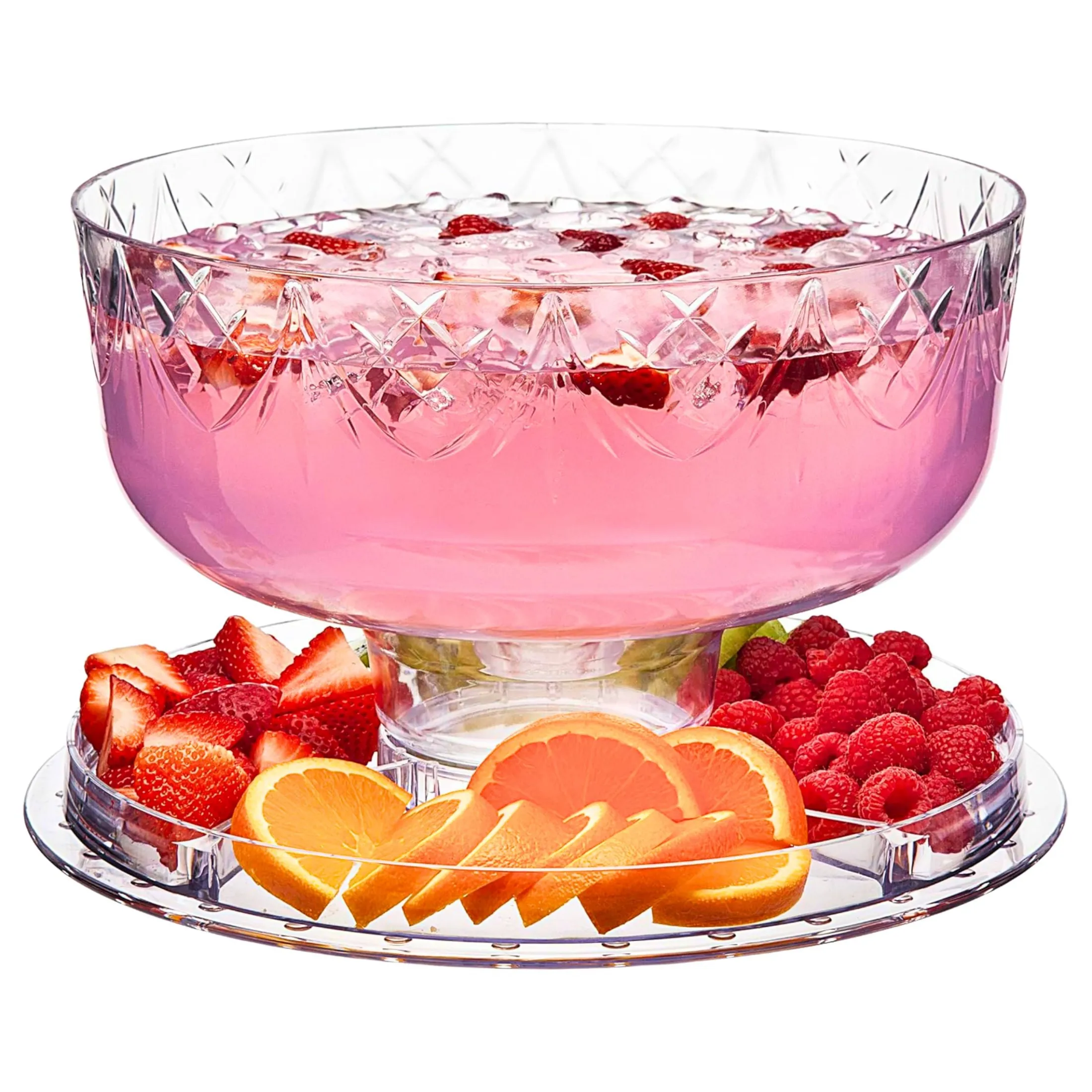 Embodying the luxurious tradition of crystal-cut glass, the Dublin collection radiates sophistication with its dazzling cut pattern. This timeless design flawlessly enhances any household. This piece’s acrylic material makes it ideal for outdoor settings, serving as a cake dome, cake stand, punch bowl, salad bowl, chip and dip, or appetizer server.