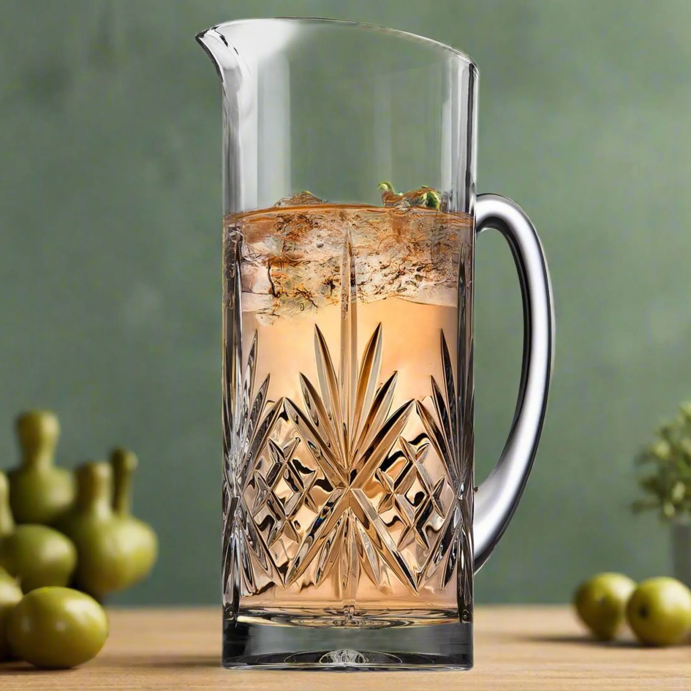 Our Dublin collection celebrates the enduring artistry of crystal-cut glass, blending timeless elegance with refined craftsmanship. Showcasing the collection’s signature brilliant-cut pattern, this crystal beverage pitcher adds a graceful touch to any table setting. Ideal for serving iced tea, lemonade, water, or cocktails, it combines everyday functionality with classic sophistication, making it a versatile and stunning addition to your serveware collection.