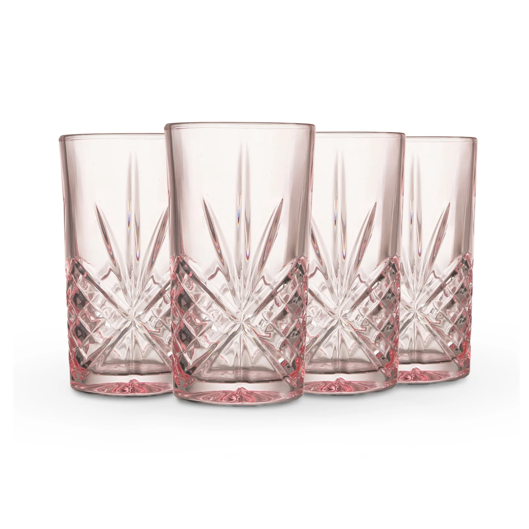 Our Dublin collection celebrates the long history of crystal-cut glass. The elegance, paired with a brilliant-cut pattern, creates timeless pieces in design and adds a refined touch to your home. This highball glass, tinted with a delicate blush hue, adds a fresh twist to classic crystal. Ideal for refreshing beverages from sparkling water to cocktails, it brings graceful charm to any occasion.