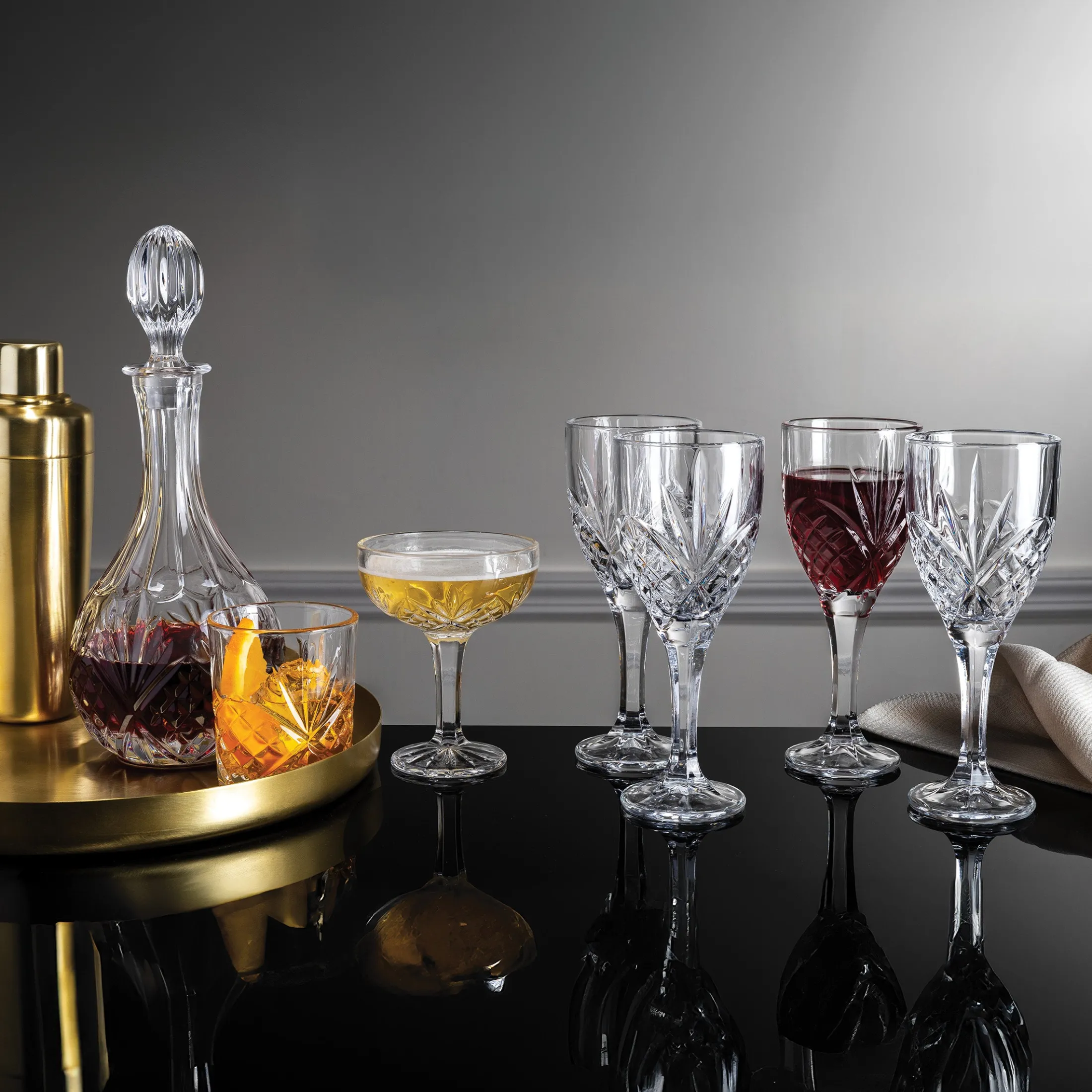Our Dublin collection is a celebration of the long history of crystal-cut glass. The elegance paired with a brilliant-cut pattern creates timeless pieces in design and refined additions to your home.