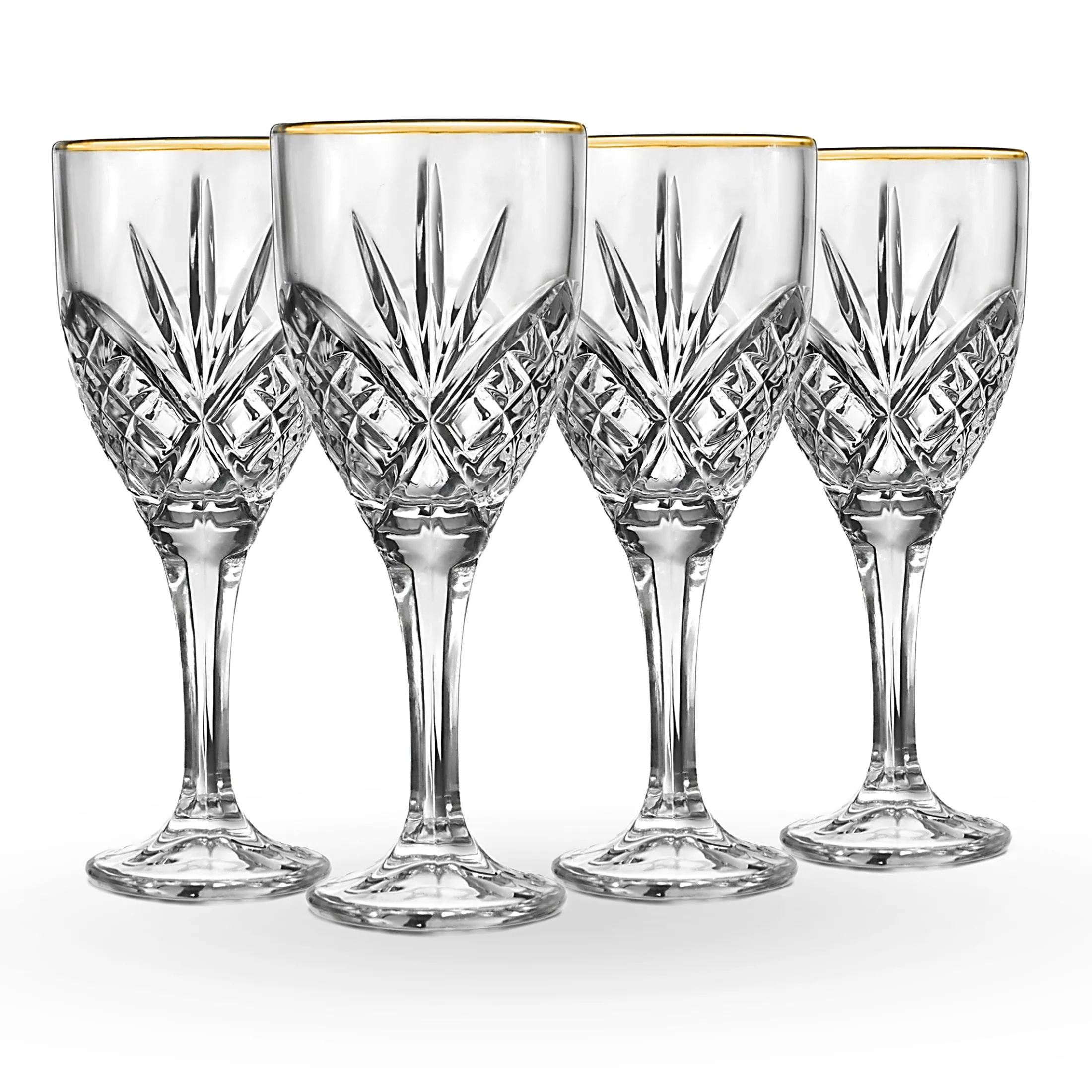 Elevate your glassware with the Dublin Crystal Gold Rim Goblet, a stunning blend of tradition and modern luxury. Featuring the signature Dublin cut pattern and finished with a sleek gold rim, this goblet brings a refined edge to your table. Perfect for wine, water, or specialty drinks, it offers elegance that shines on any occasion.