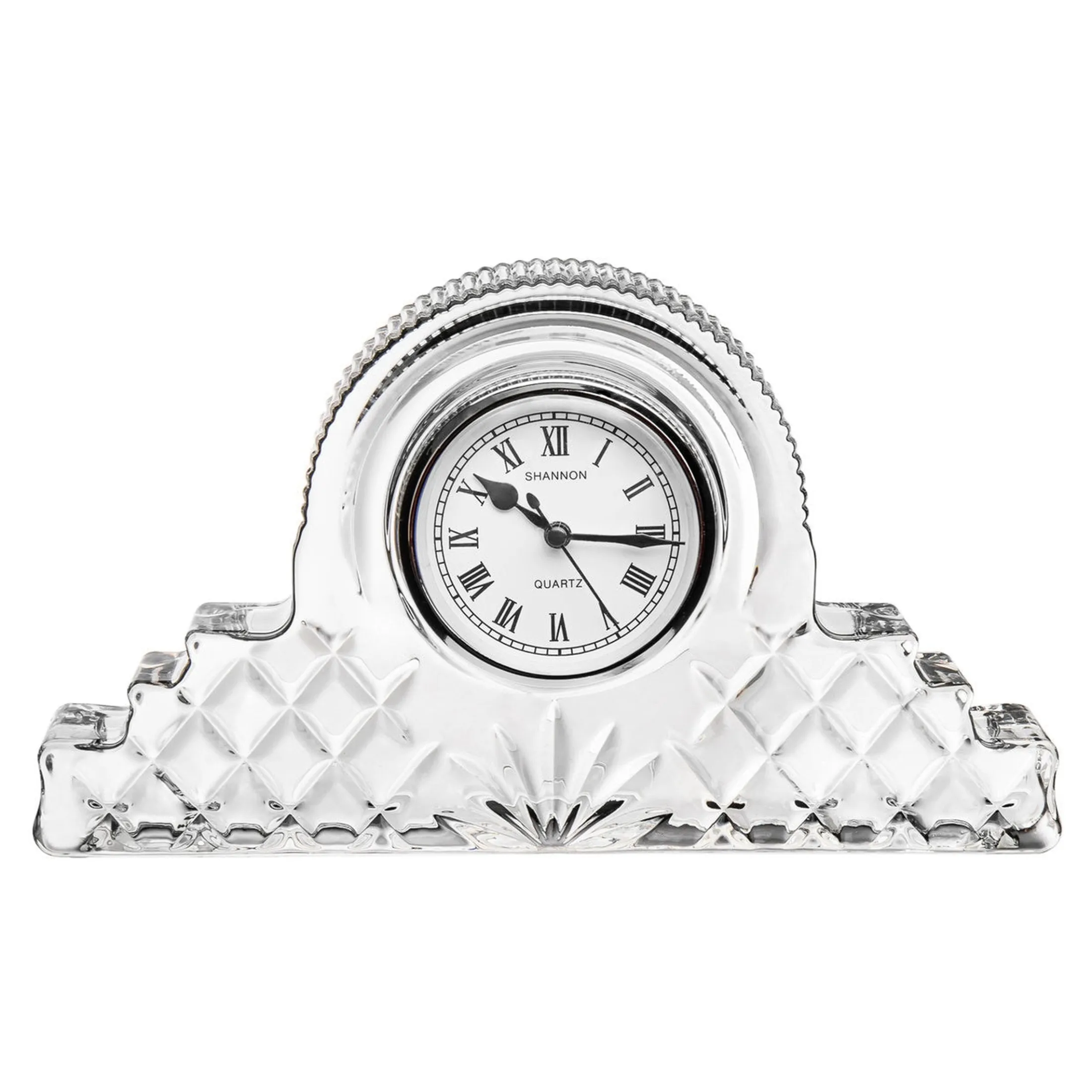 The Dublin collection celebrates the rich tradition of crystal-cut glass. With its brilliant-cut pattern and refined craftsmanship, each piece exudes timeless elegance. The Dublin Crystal Mantle Clock is a striking example, an exquisite accent that enhances any mantel, bookshelf, or desktop. Its classic design and radiant crystal detail add a touch of sophistication to both traditional and modern interiors.