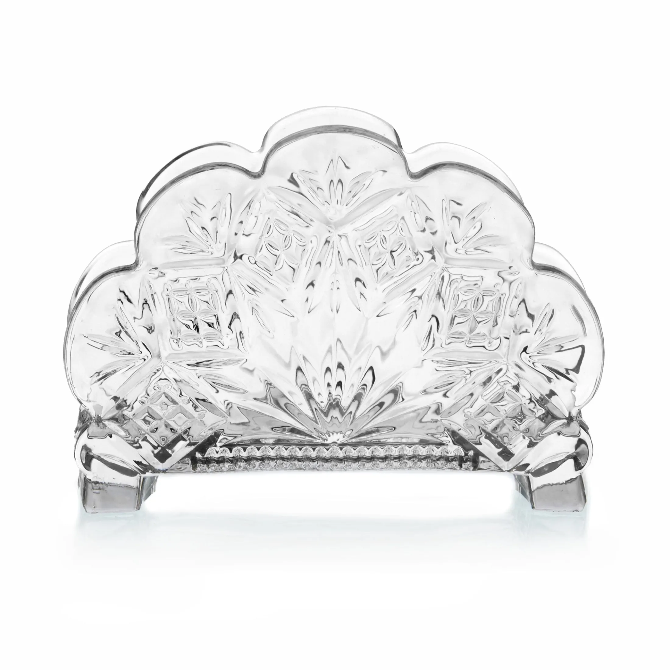 The Dublin collection pays tribute to the timeless artistry of crystal-cut glass. Featuring the signature brilliant-cut pattern and elegant scalloped edges, this standing napkin holder combines functionality with refined beauty. A sophisticated addition to your table or countertop, it keeps napkins neatly organized while adding a touch of sparkling elegance to both everyday meals and special occasions.