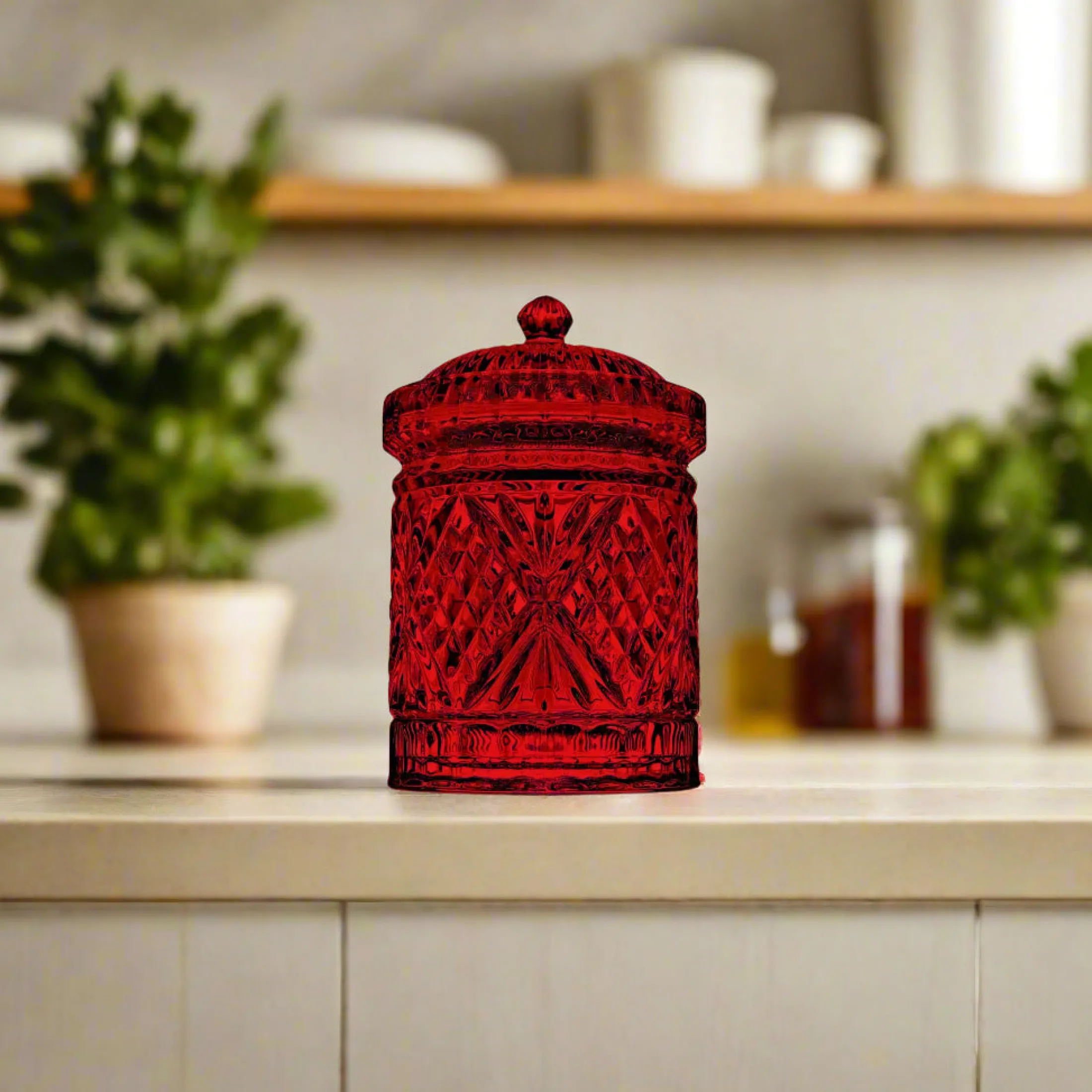 The Dublin set is a salutation to crystal-cutting glass’s rich, prolonged heritage. The sensational pairing of opulence and shining-cut motifs lends to the singularly timeless manufacture of these stately pieces, adding an exquisite flair to your abode. This scarlet canister is an ideal yuletide accent for your cooking area.