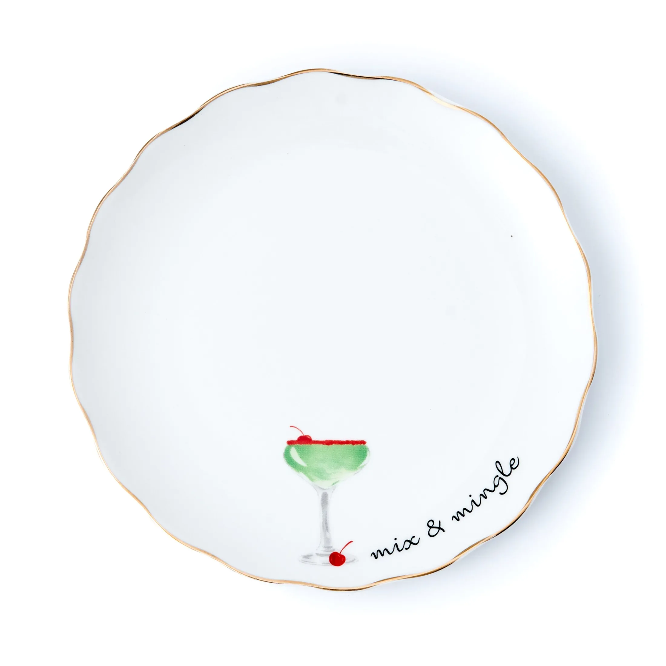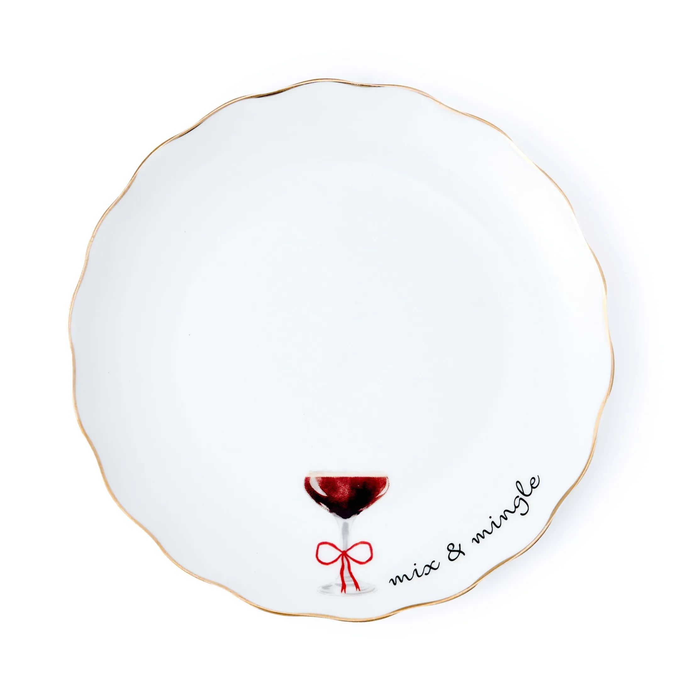 - Accented with a shimmering gold rim for a festive touch of elegance.