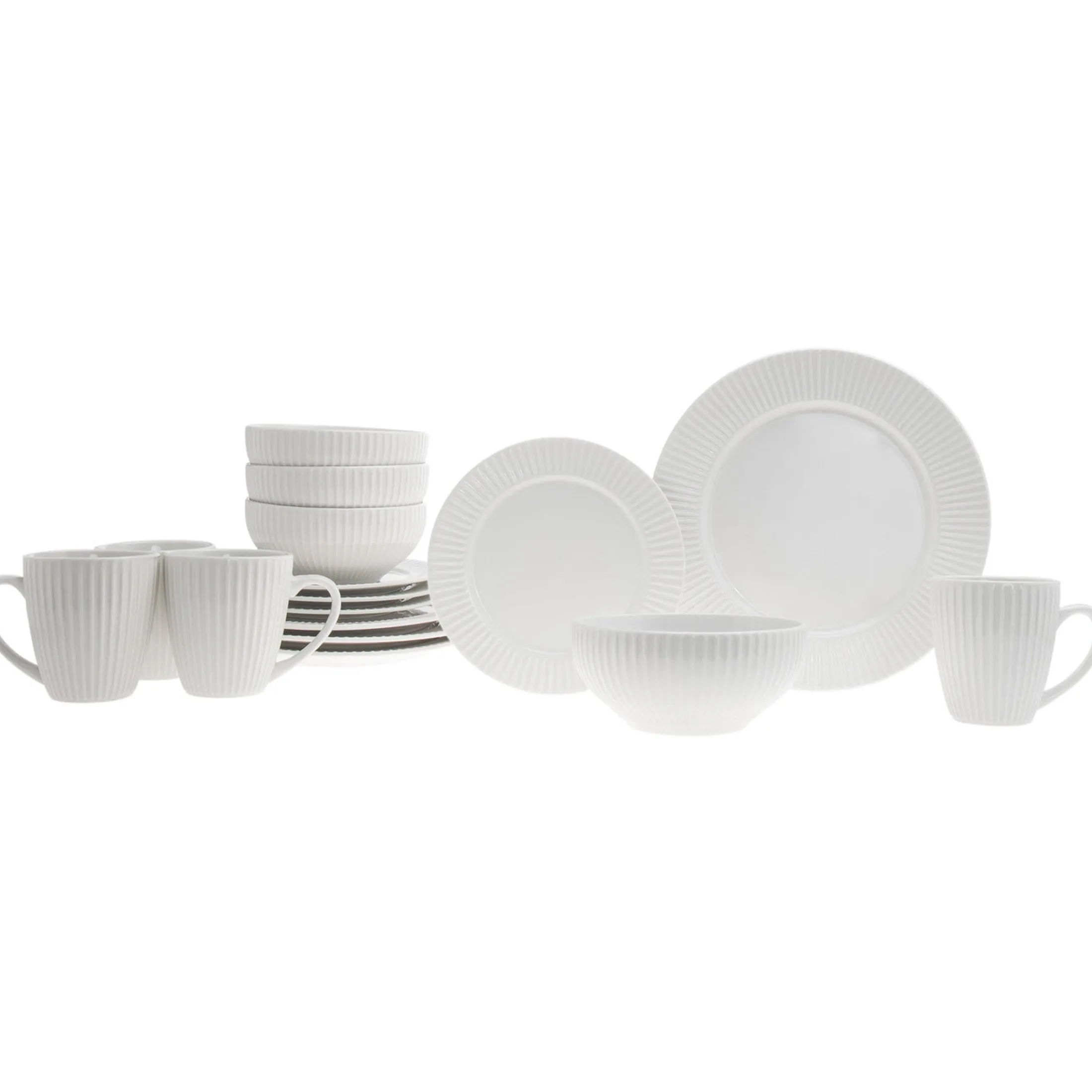 This 16-piece dinnerware set provides a beautiful presentation for your dining experience. With its ribbed edging details and porcelain construction, the Inventure set ensures durability and elegance. Its service for four allows you to entertain in style.