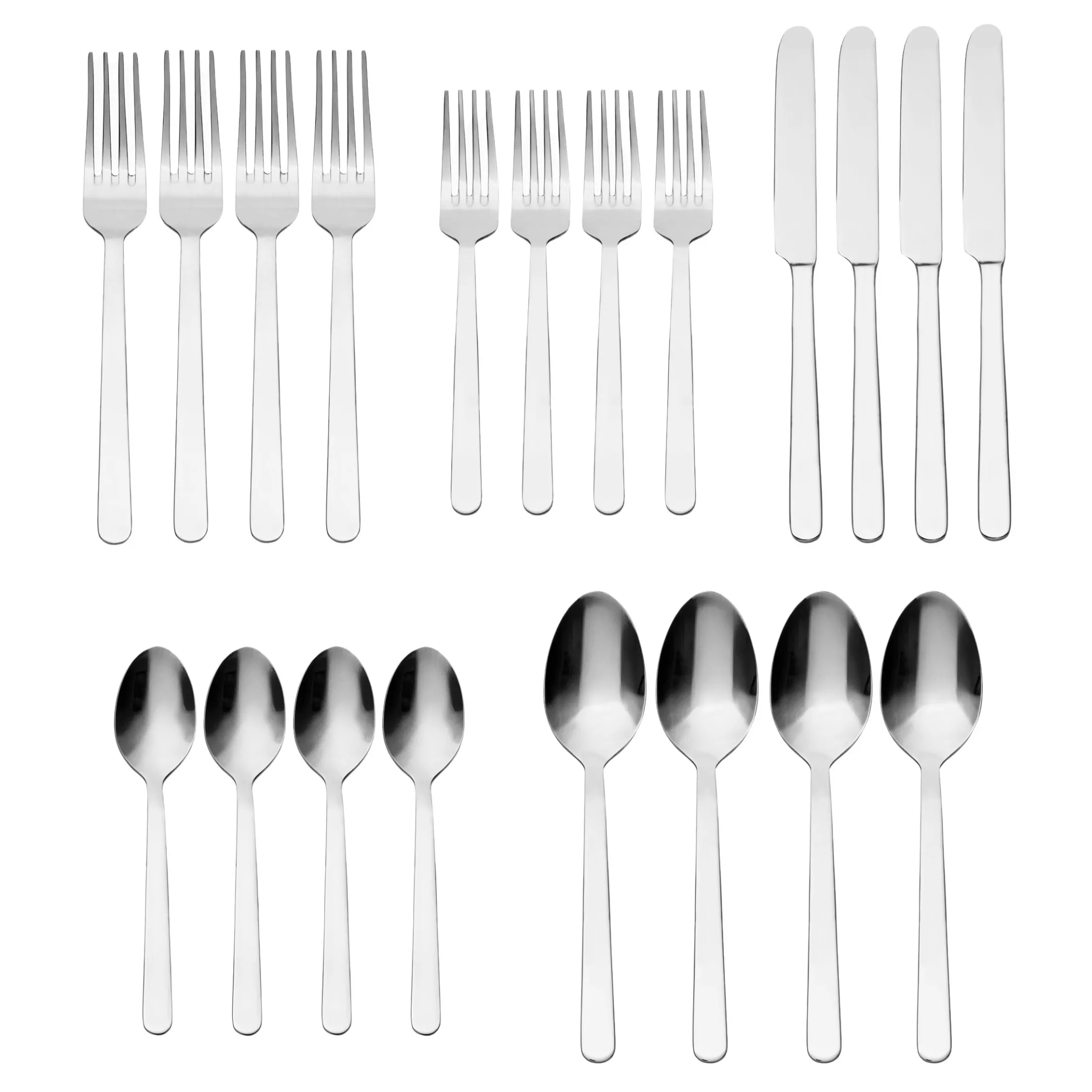 This Lola Mirrored flatware set was crafted with 18/0 stainless steel, making it highly durable and dishwasher safe. The classic, rounded design provides a timeless look that is perfect for everyday dining. Enjoy your meal with this 20-piece set, which provides service for up to 4 people.