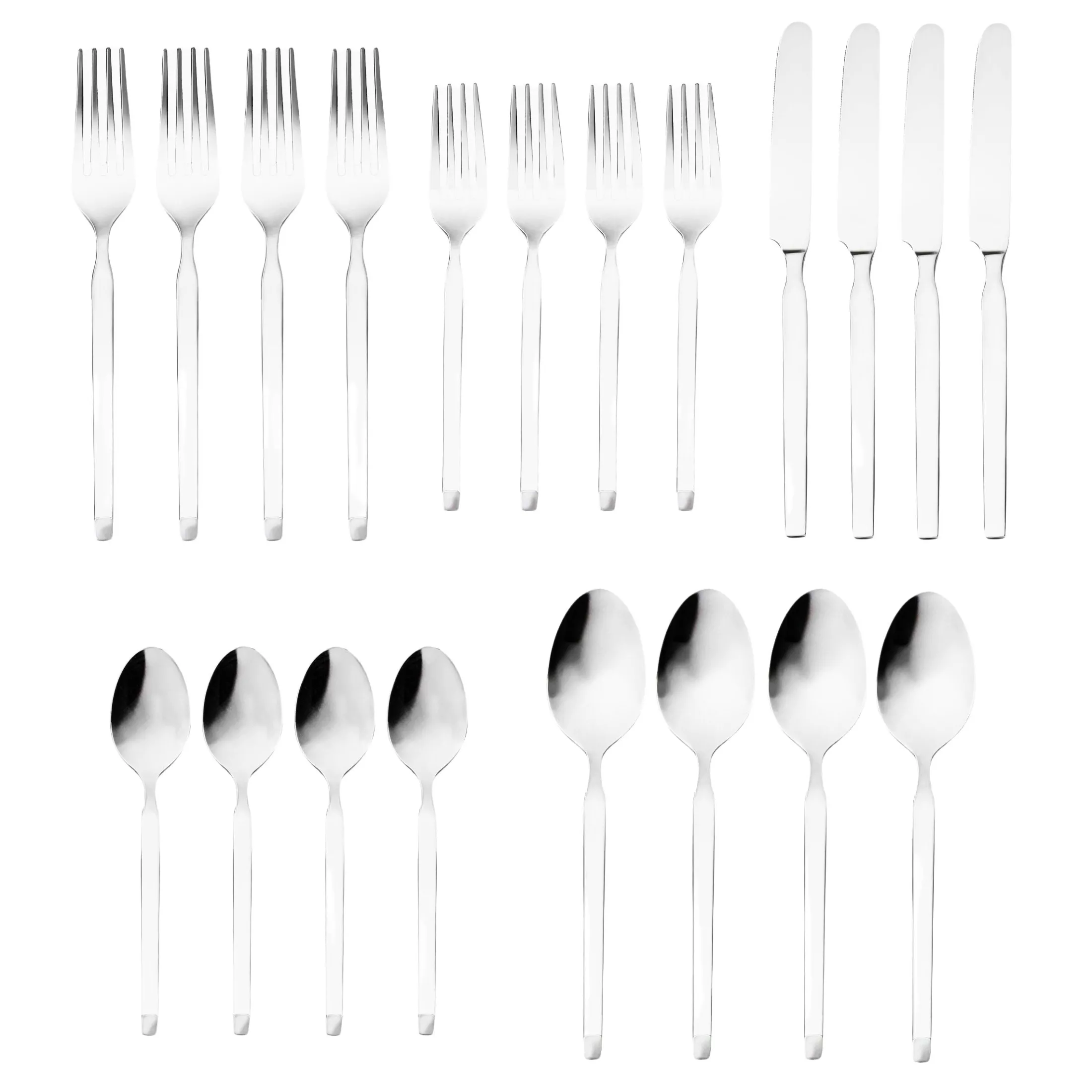 This Ramp 18/0 Stainless Steel 20 Piece Flatware Set is perfect for everyday use. Every piece is made with sturdy stainless steel and has a bend in the handle for easy pickup. Get your hands on this modern and stylish flatware set to bring elegance and convenience to your meals!