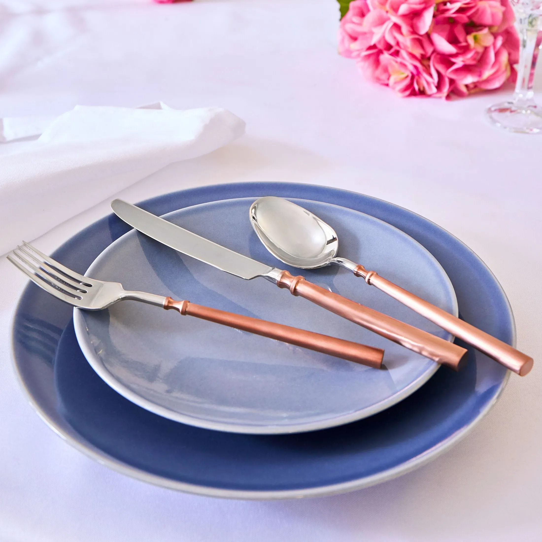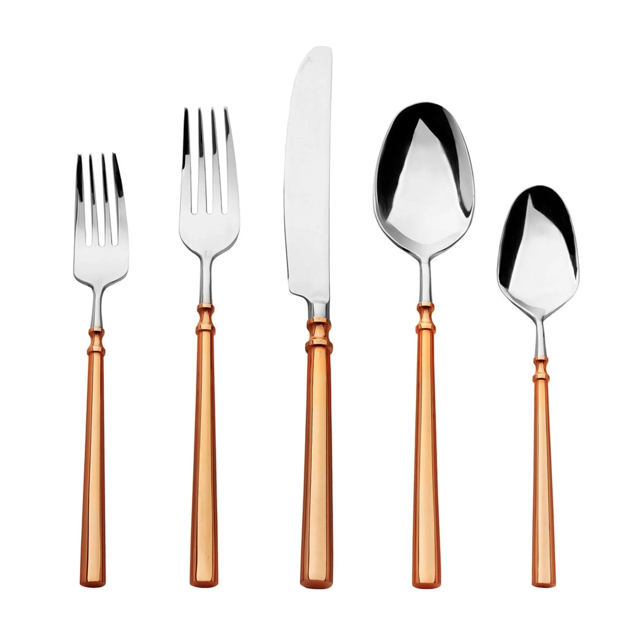 Graceful, minimal curvature on the handle lends a delicate, airy touch to each piece. This set perfectly marries form and function, offering a timeless, luxurious design that will impresses.