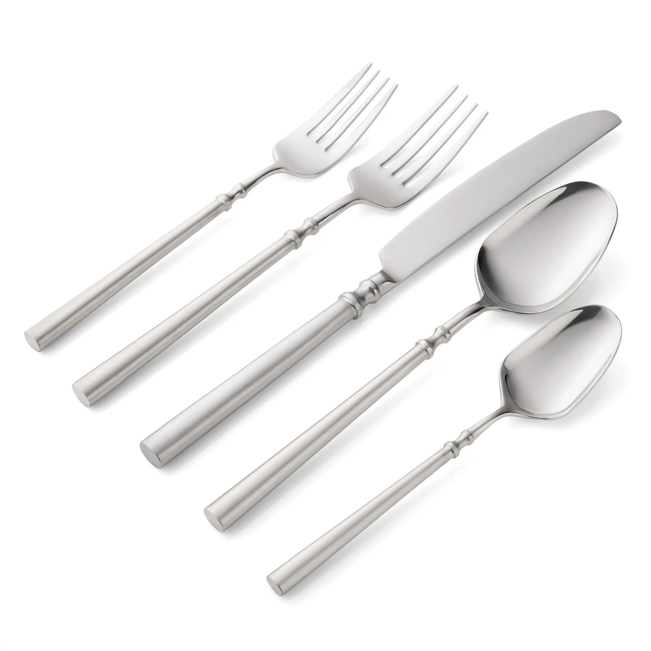 Graceful, minimal curvature on the handle lends a delicate, airy touch to each piece. This set perfectly marries form and function, offering a timeless, luxurious design that will impress.