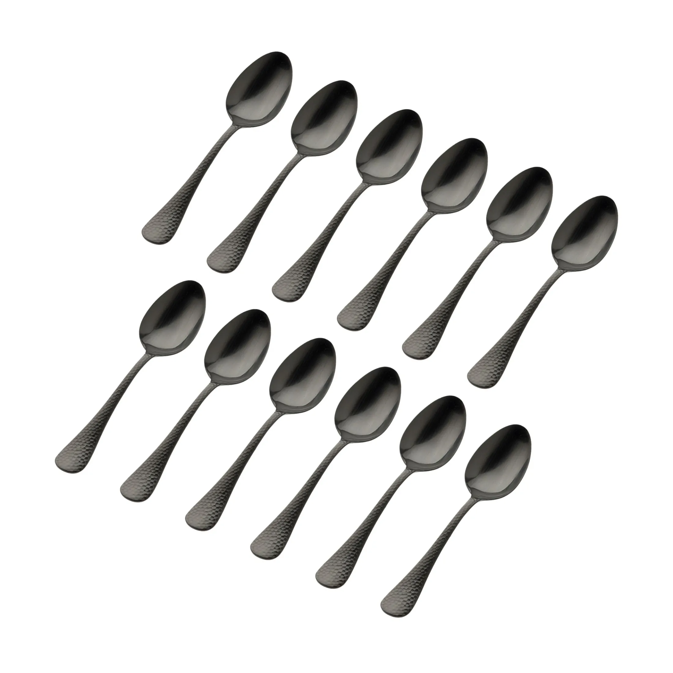 Crafted for everyday durability and classic style, this 12-piece Salem Matte Black 18/0 Stainless Steel Tablespoon Set delivers reliable performance meal after meal. Featuring a timeless hammered finish and clean, versatile design, these forks blend seamlessly with any table décor—perfect for daily use, entertaining guests, or completing your existing flatware set.