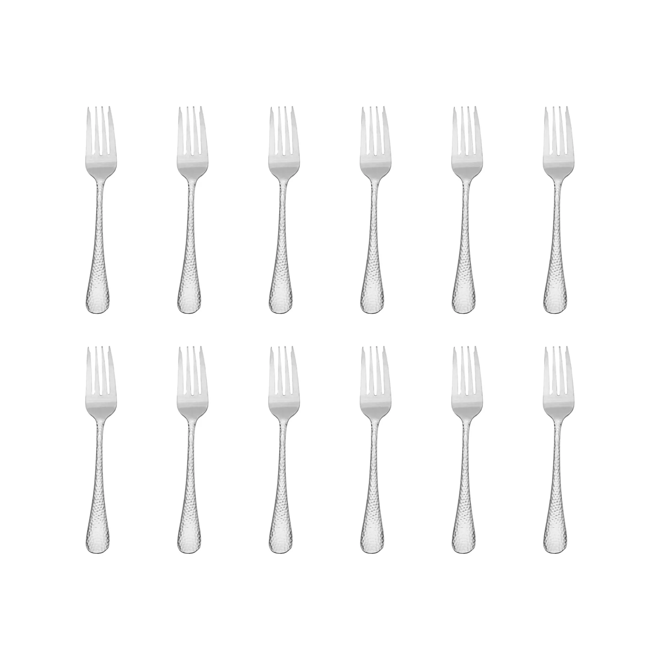 Crafted for everyday durability and classic style, this 12-piece Salem Mirrored 18/0 Stainless Steel Salad Fork Set delivers reliable performance meal after meal. Featuring a timeless hammered finish and clean, versatile design, these forks blend seamlessly with any table décor—perfect for daily use, entertaining guests, or completing your existing flatware set.