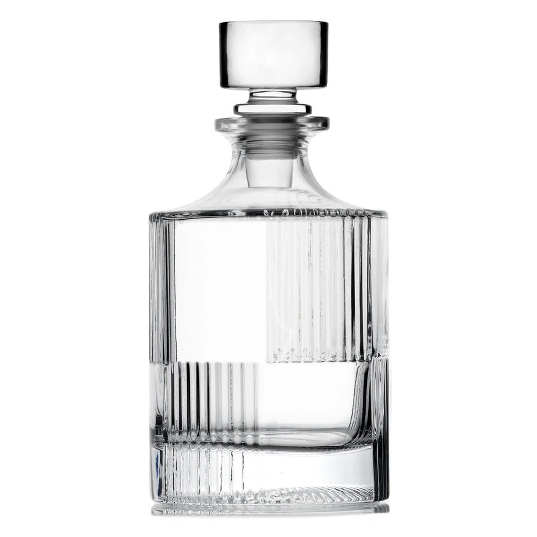 Present your finest whiskey in sophisticated style with the Scatola Whiskey Decanter. Crafted with a round crystal cut design and a unique checkered pattern, this decanter provides a tasteful elegance that lends to the perfect pour of your favorite spirits—a toast to premium taste with this luxurious decanter.
