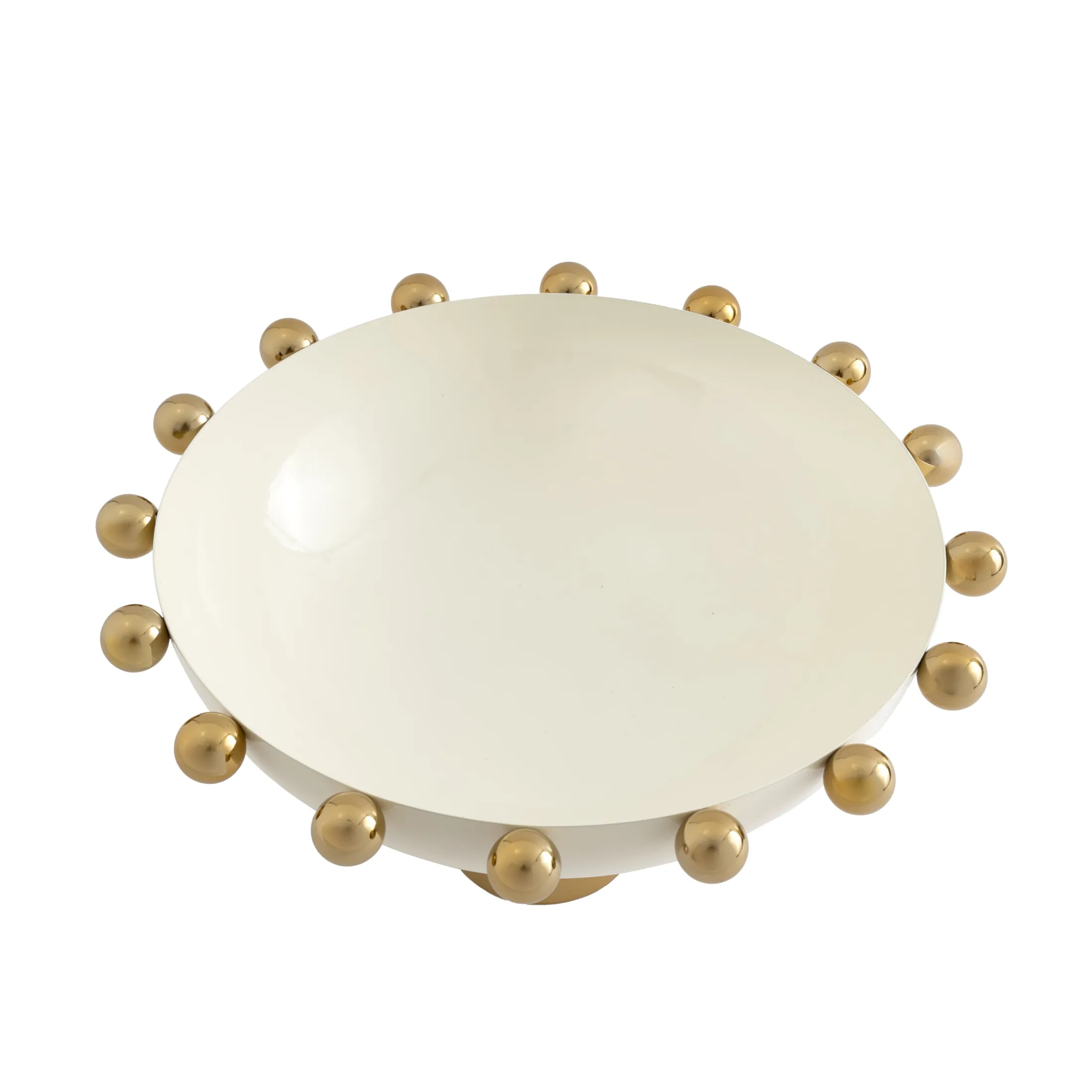 Bring modern refinement to your table with the Temari White & Gold Footed Salad Bowl. Handmade in India, this bowl is crafted from polished stainless steel with a smooth white surface and clean, contemporary lines. Elevated by the collection’s signature gold ball feet, it blends artisanal craftsmanship with sleek modern design. Perfect for serving fresh salads, pasta, or seasonal fruit, it also doubles as a striking decorative centerpiece. With its versatile style and timeless elegance, this piece makes every gathering feel special.