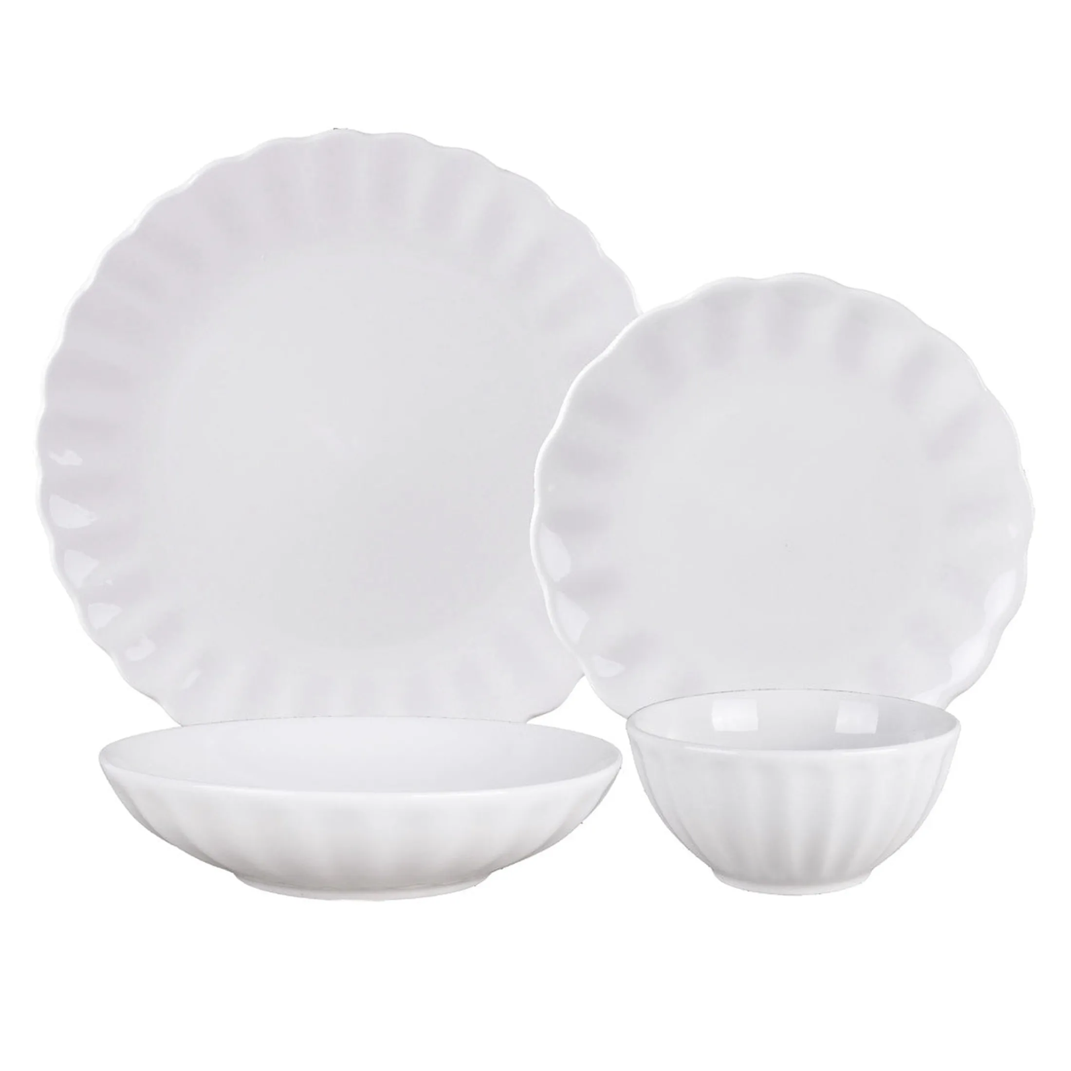 Create a decadent dining experience with the Viera Porcelain 16 Piece Dinnerware Set. Its wide scalloped edge brings classic elegance to any space, crafted in classic white porcelain for a sophisticated look. Enjoy high-end style with these striking dishes, perfect for formal dinners and special occasions.